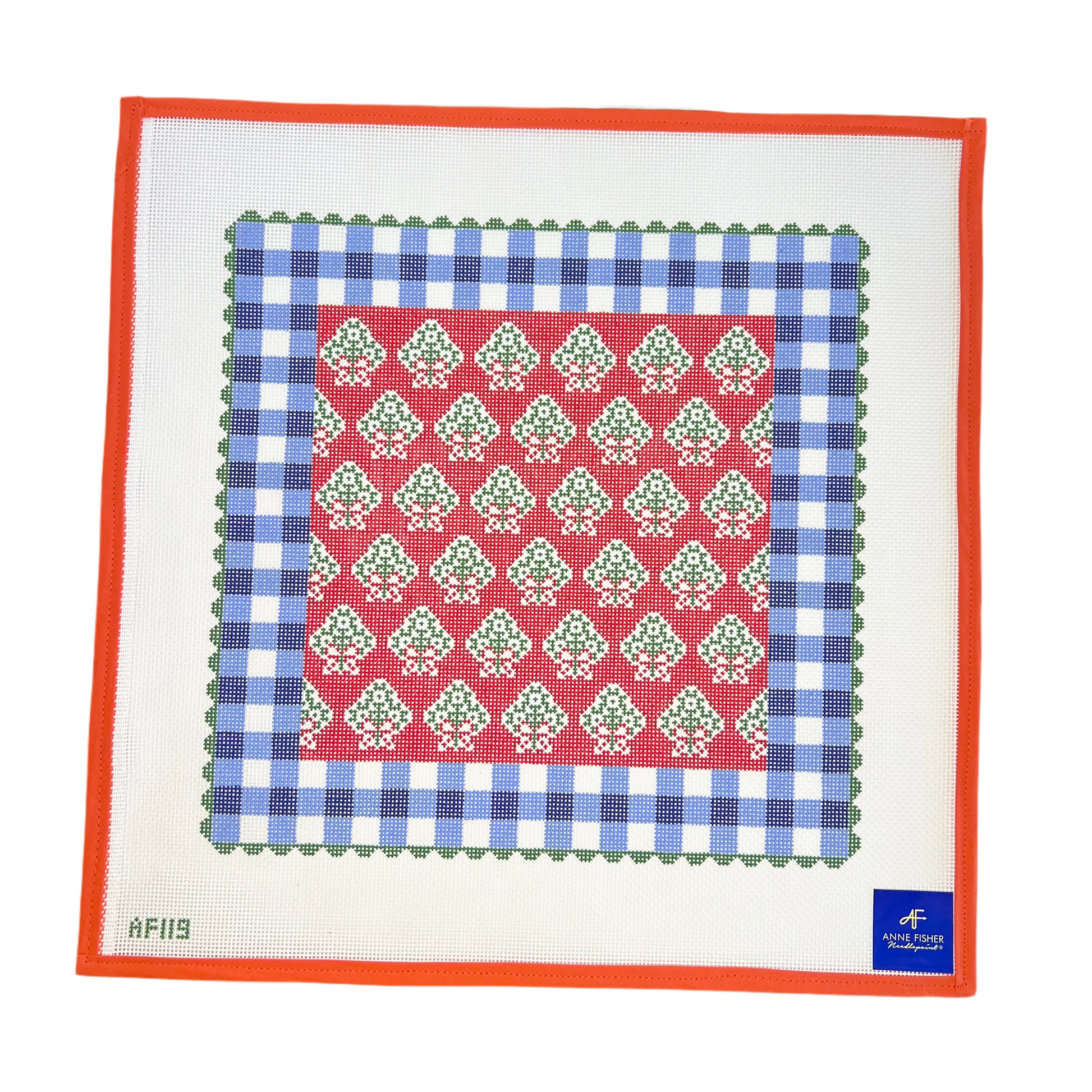 Red Holiday Pillow With Blue Ginngham
